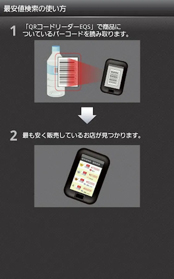 By reading the bar code of a product, you can search the shop on the web where the product is sold at the cheapest and shop as it is!
