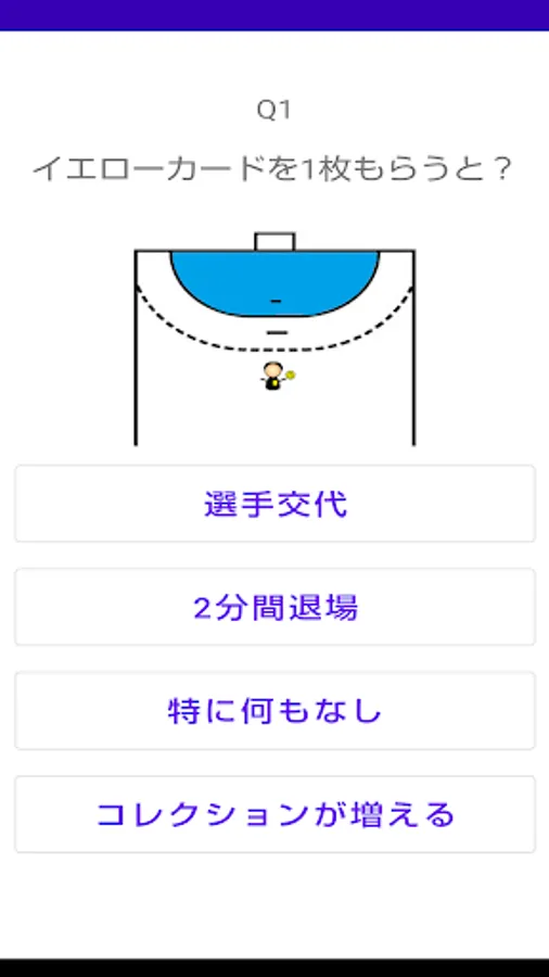 ・If you answer one question incorrectly, you will not be able to proceed to the next question, and the result will be determined. There are 10 levels of result judgment in all, and it is judged according to the number of correct answers. There are different background colors and sound effects prepared for each stage, so it's fun. The background color is derived from the color of the actual handball referee's patch.