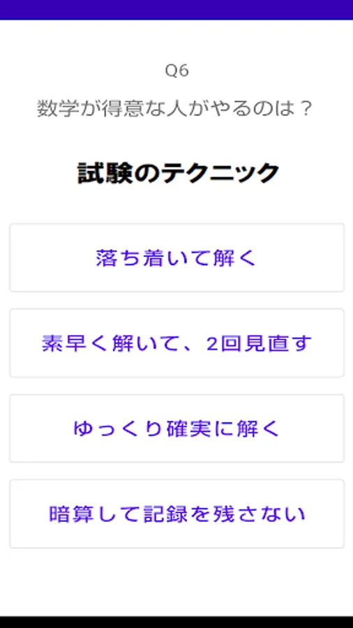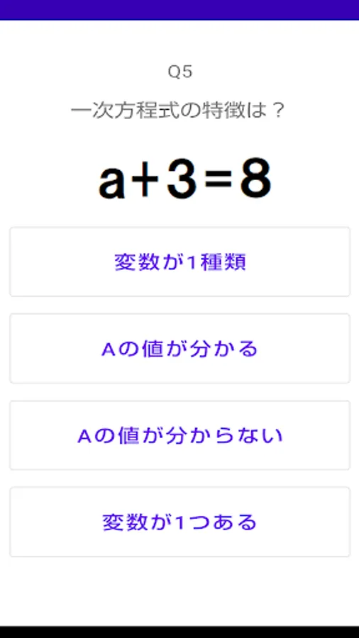 It is a learning app for overcoming math, which is a weak subject. In October 2022, a proficiency test was held for junior high school students in Ibaraki Prefecture. The average score was 39.5 points, and the content was highly difficult. This app targets scorers with 30 to 50 points around the average score. Mathematics is called accumulation learning, and if you stumble in the first grade of junior high school, you will not be able to understand the future learning. In today's society, the world of artificial intelligence and robot technology is expanding, and knowledge of mathematics is indispensable. Let's dispel the awareness that mathematics is not good at early and make it a good subject. Let's deepen your understanding of mathematics in an easy and fun way by using the gap time such as commuting to school, break time, and commute time for club activities. It's a quiz-style app that allows you to choose the correct answer from four choices, so you can learn easily and enjoyably.