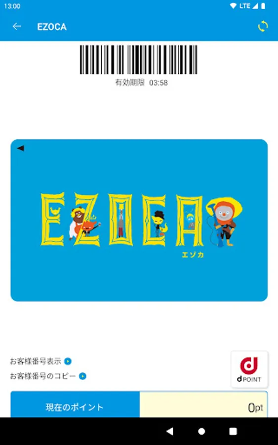 ■ When you register your EZOCA card in the app, the barcode will be displayed in the app.