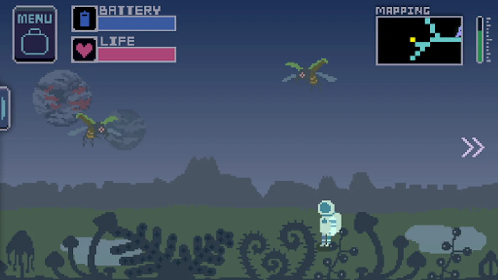 A survival RPG that is expressed with simple and beautiful dot paintings to explore a world of loneliness and unique eerie.