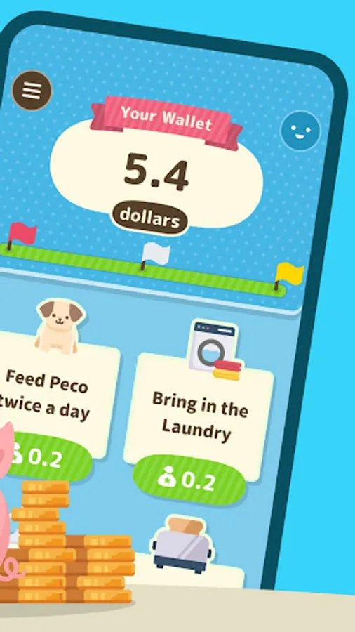 You can create daily TODO. Small amount of money is set as reward on each task. Pleasant sounds and animations inspire your children.