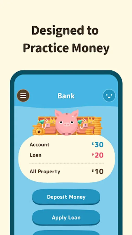 Children simulate experience almost like real bank such as deposit, withdraw and apply loan. By holding money in your bank account, you will receive interest income every single month. This functions focus on ‘how to manage the property’.