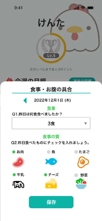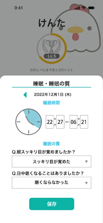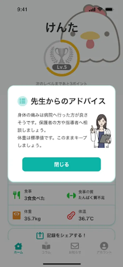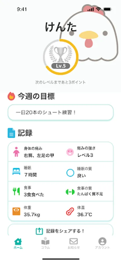 ・Recording function (body pain/intensity of pain, sleep time/quality of sleep, number of meals/meal content, weight, body temperature)