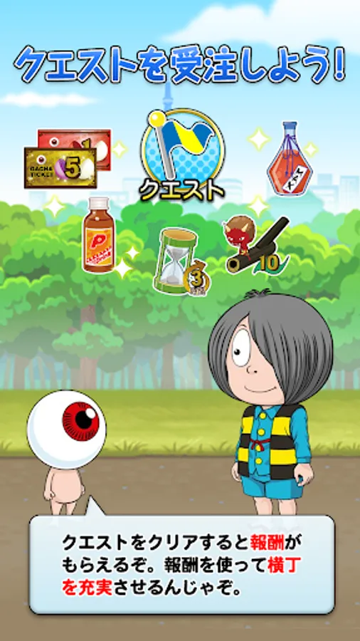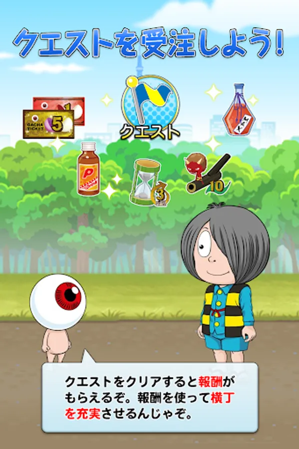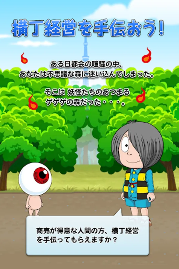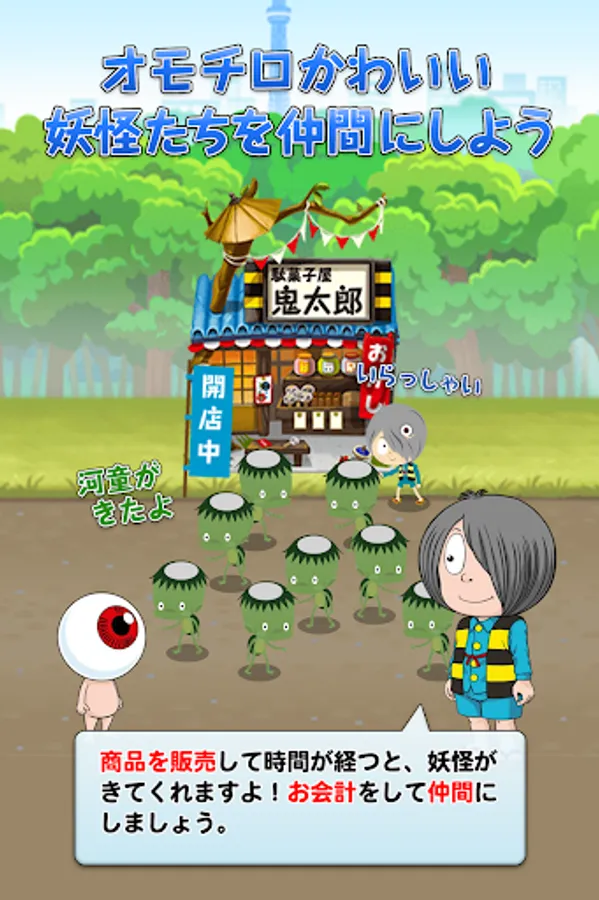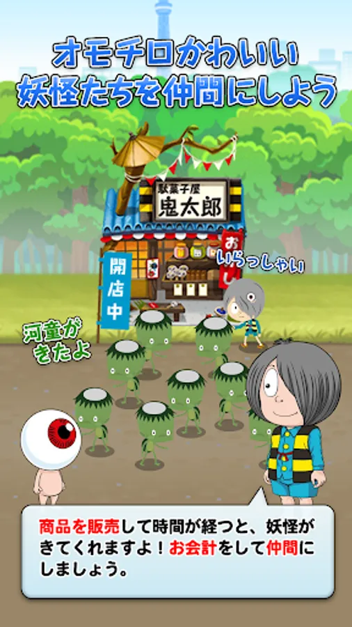 In "Gegege no Kitaro: Yokai Yokocho", the player becomes a "human with magical powers" and works with Kitaro and his friends to make the shop prosperous in Yokai Yokocho in the Gegege Forest.