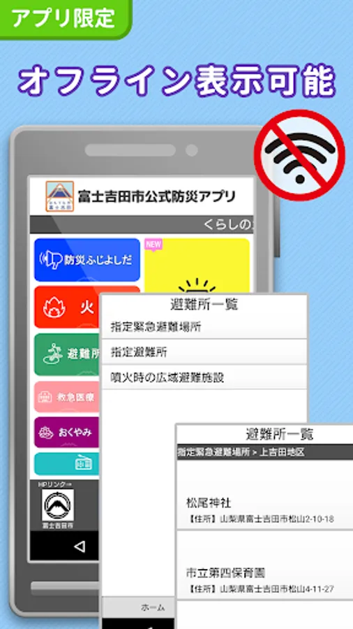 防災・防犯情報、災害情報や避難所情報などをお伝えします。
