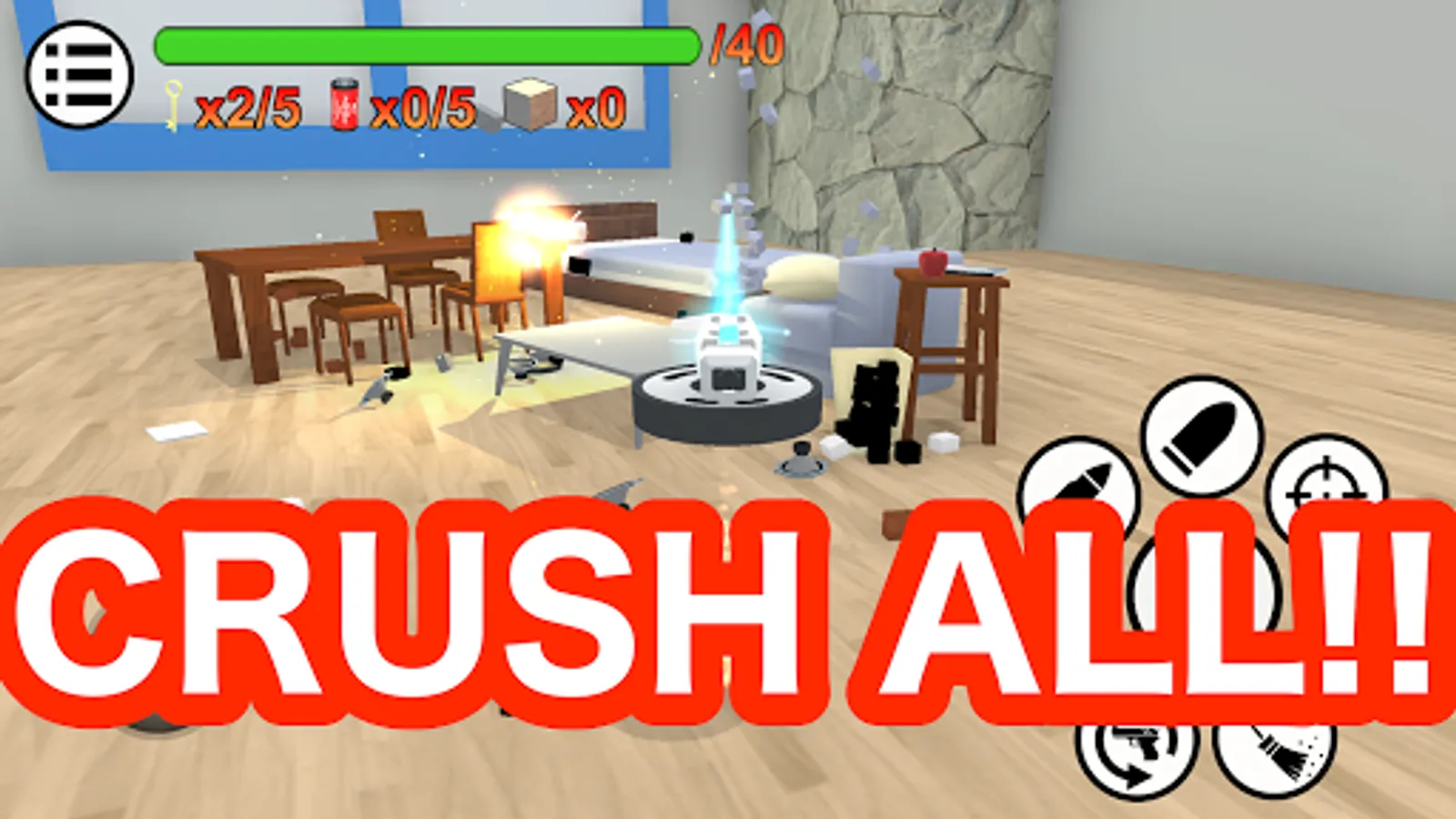 Fusion of physics and 3D action, cleaning robot escapes from home and rampages!