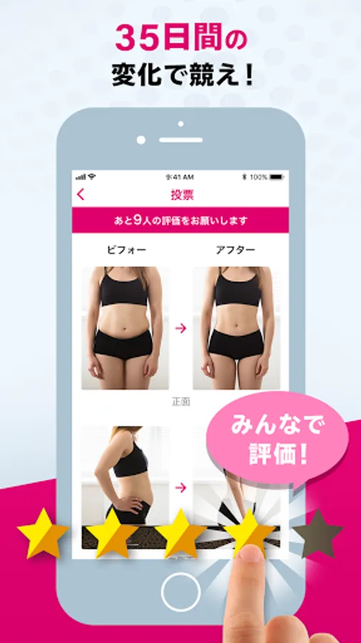 It is a fitness app with the concept of starting together and working hard together until the goal day.