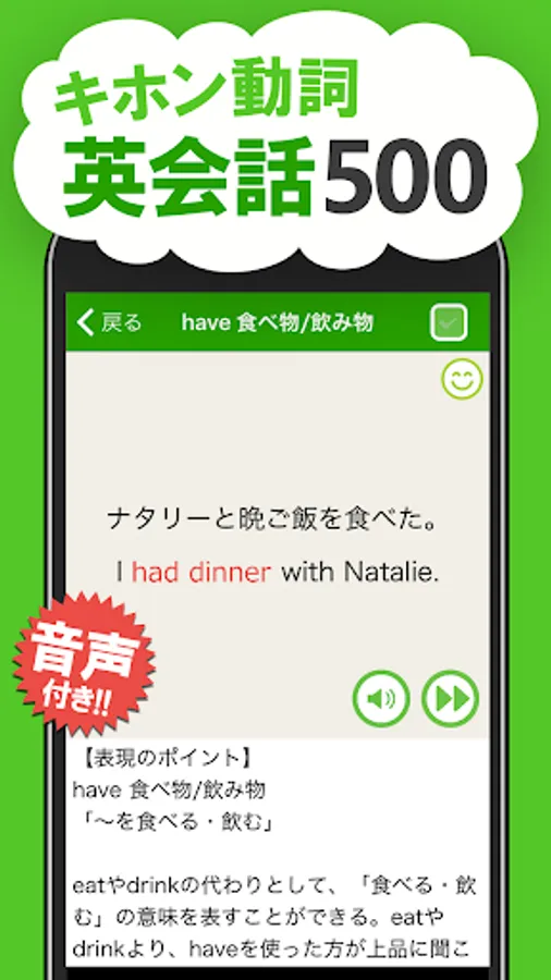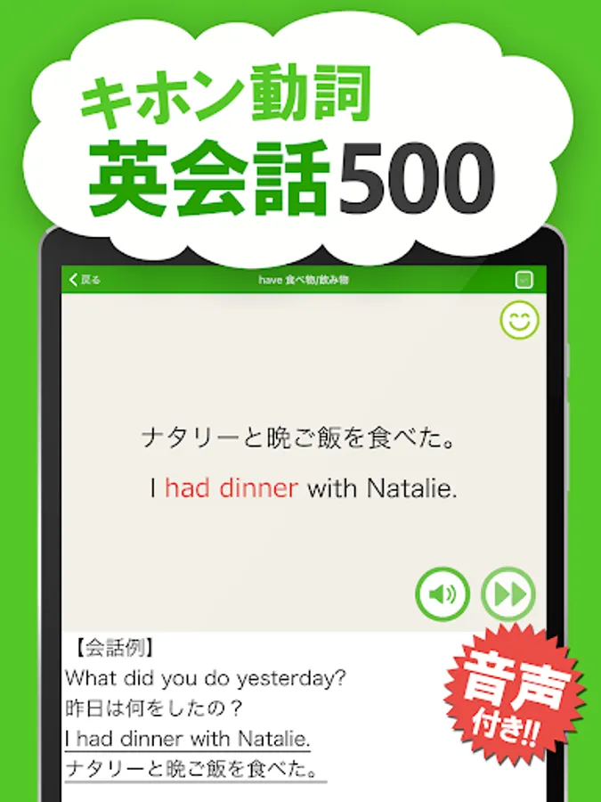 This app "Kihon Verb English Conversation-Beginner English Conversation Phrase 500 that can be spoken with only 10 verbs" is free.