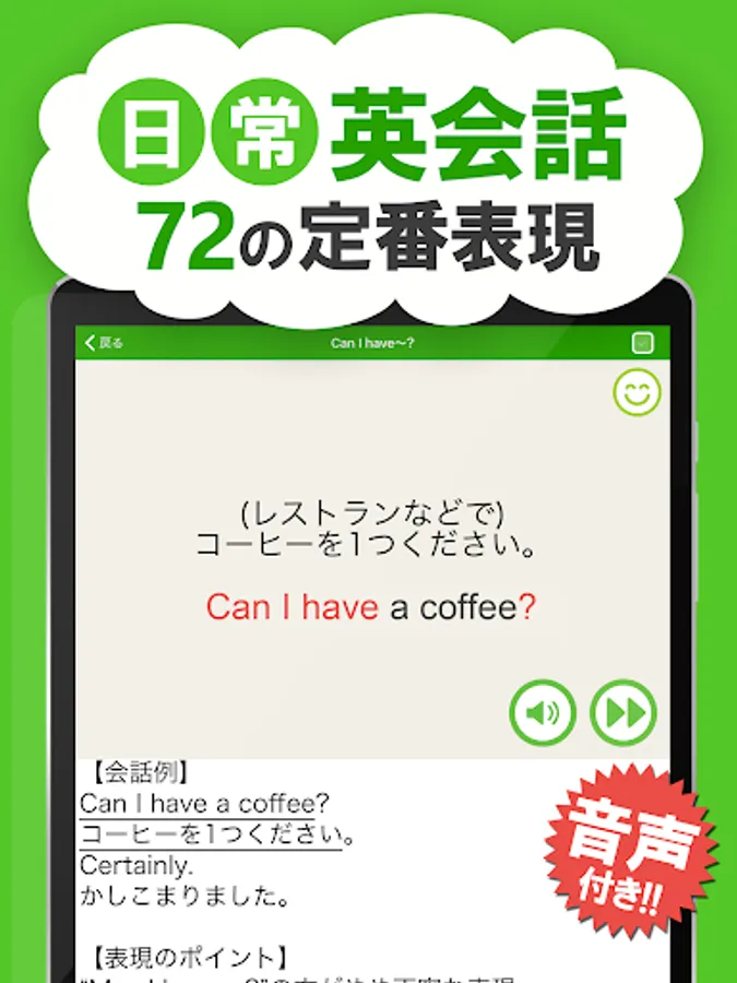 This app "Daily English Conversation Expression Listening Support! 72 Standard English Expressions Used by Natives" is free.