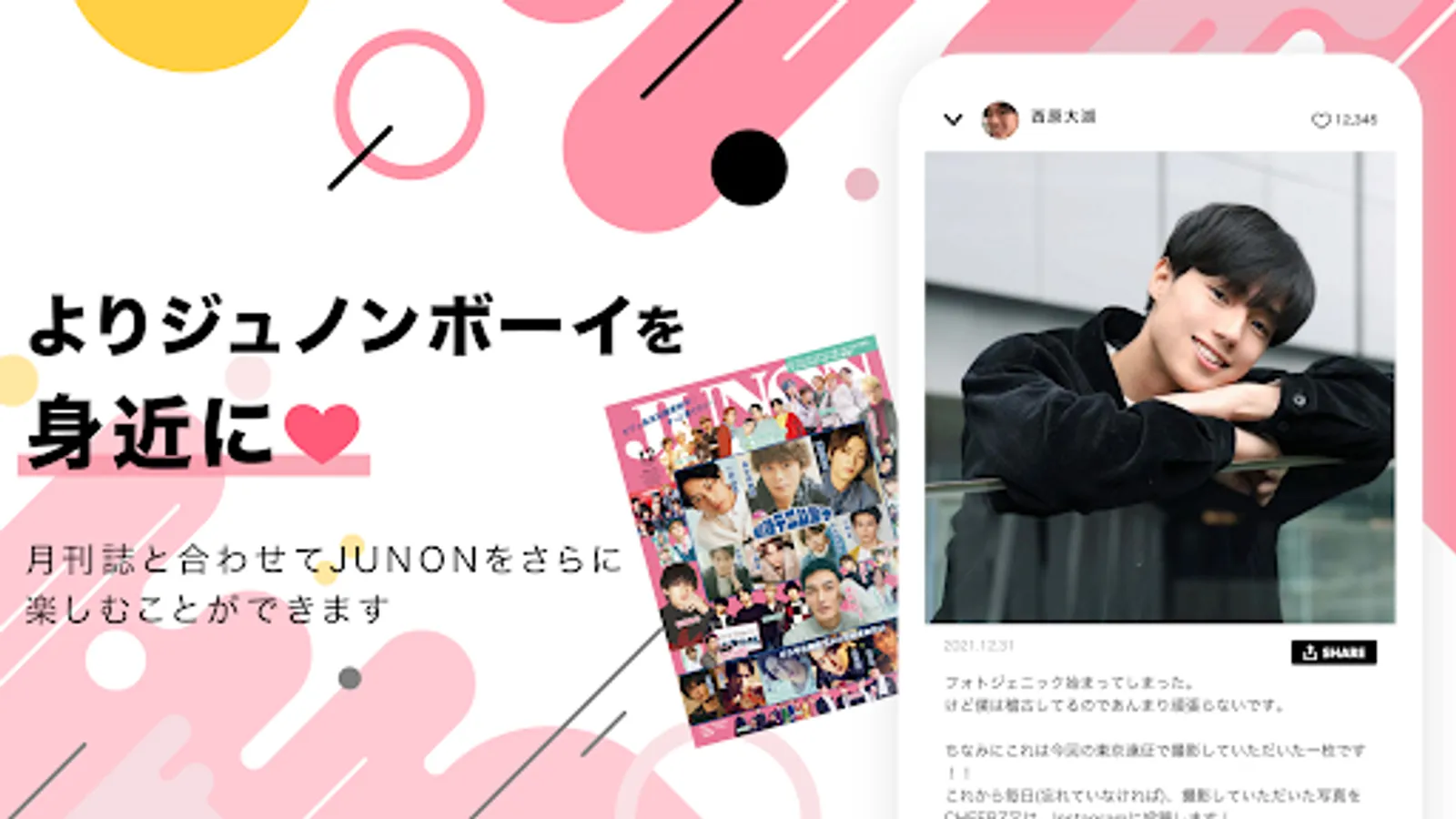 Photos and videos posted by Junon Boy boys from their smartphones will be played in real time.