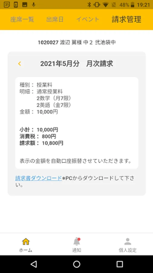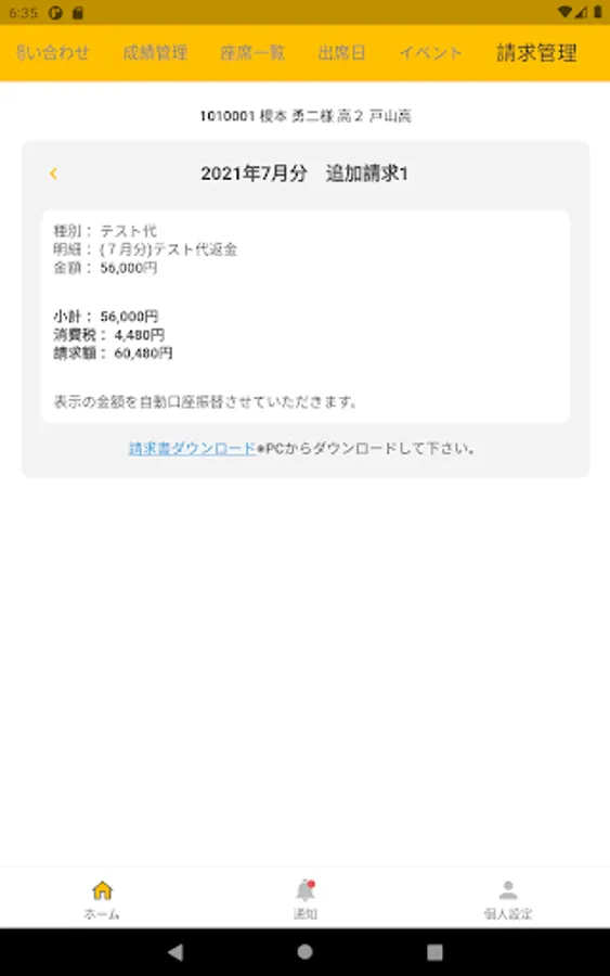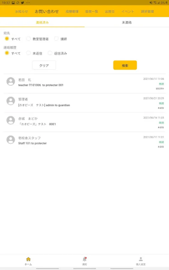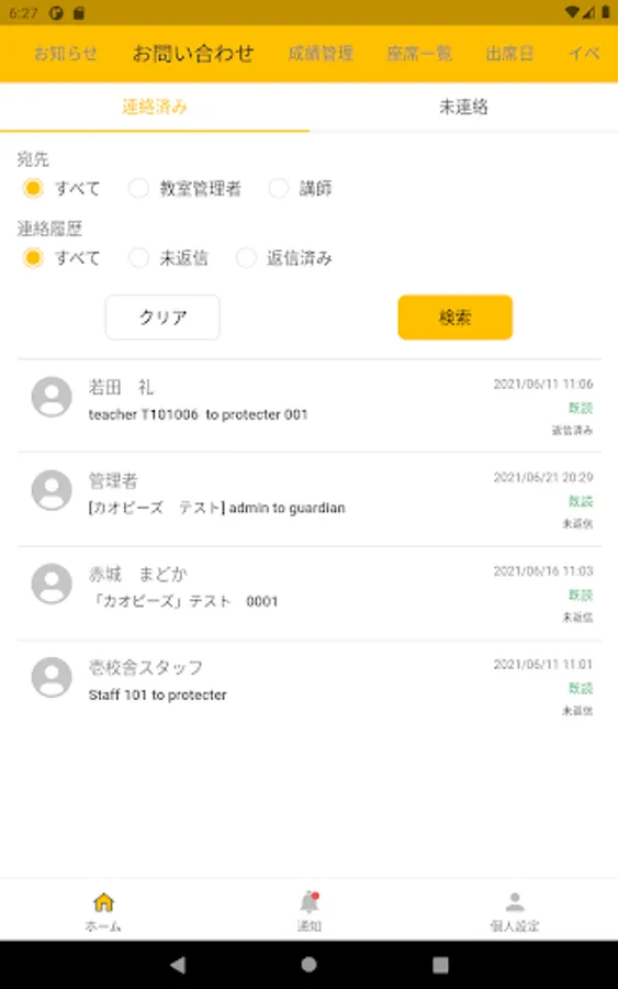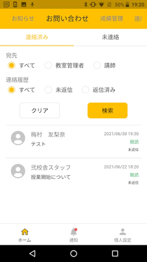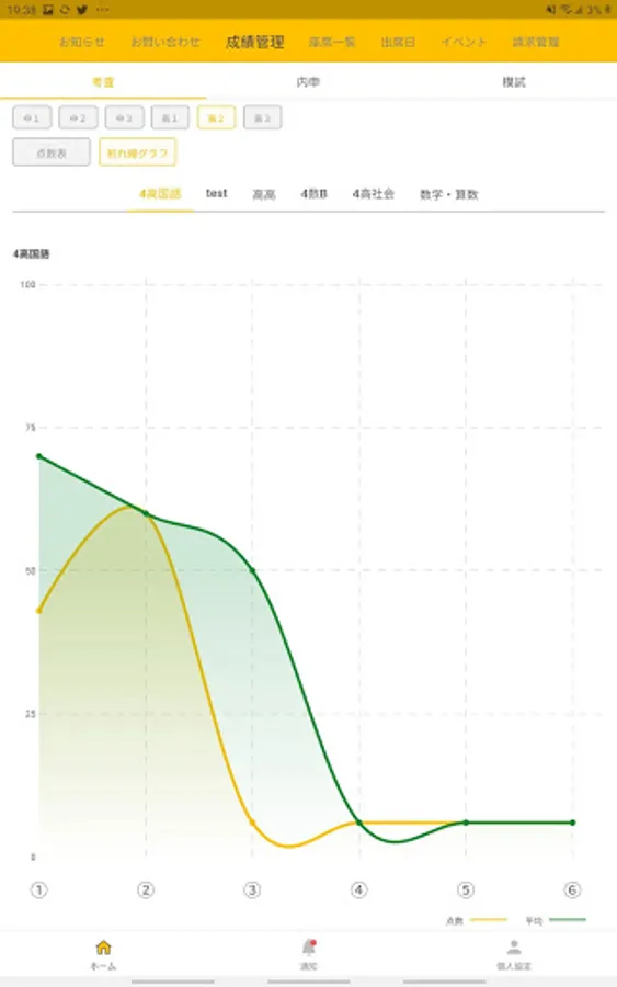You can make inquiries and announcements to the cram school, manage your child's grades, and manage class schedules.