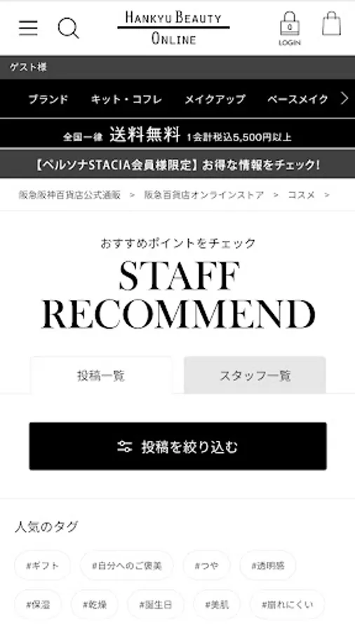 You can check the recommendations of beauty advisors from STAFF RECOMMEND on "HANKYU BEAUTY ONLINE".