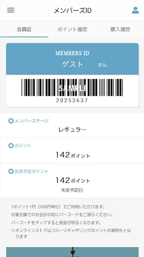Points can be earned and used by presenting the membership card barcode when purchasing at the store.