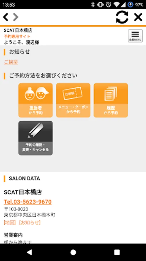 From My page, you can check the reservation status. Visit and confirmation of history and point, you can see a photo that was taken at the shop. Also you can receive announcements of campaigns and the like from the store.