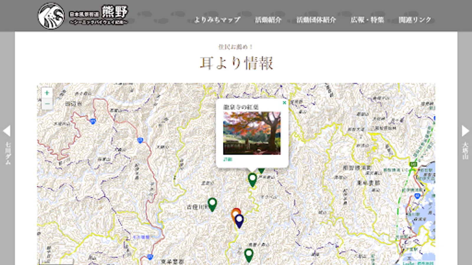 Introducing recommended spots for each region of Japan Scenic Road Kumano and activities of Japan Scenic Road Kumano.
