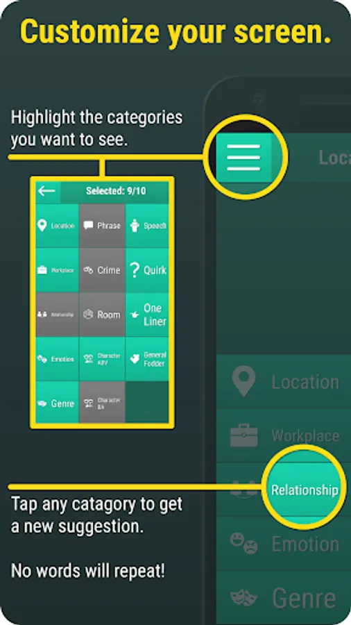 Whenever you’re struggling creatively and you need a suggestion to prompt you back into action, Sokkyo has got you covered. There’s 18 categories of suggestions to choose from, 4 of them are randomly generated, so you’ll get unique ones every time! Sokkyo was also programmed not to show you any repeats until you’ve finished off the whole list of words, or if you close the app!