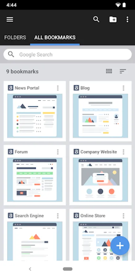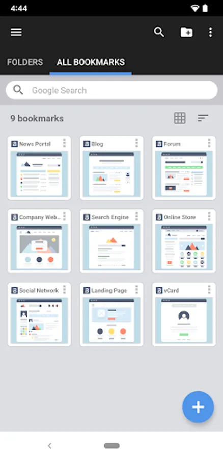 Bookmarks can be backed up to a file. You can easily restore your data in case of device failure. Also, if you change your Android device, you can easily move your data to the new device and transfer it.