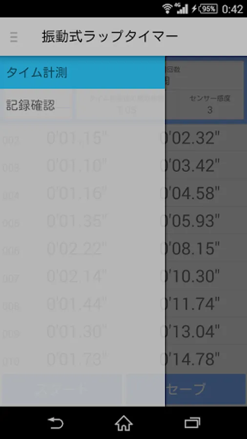 This app is lap timer of "vibration detection type" which measures the lap time at 1/100 second precision.