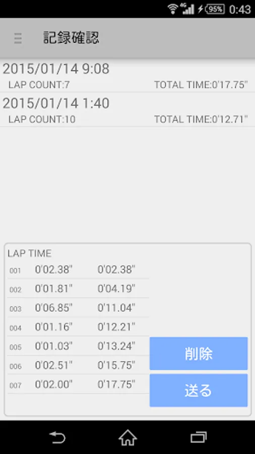 - The measured lap times, you can transfer to the e-mail and Facebook, etc. of other apps.