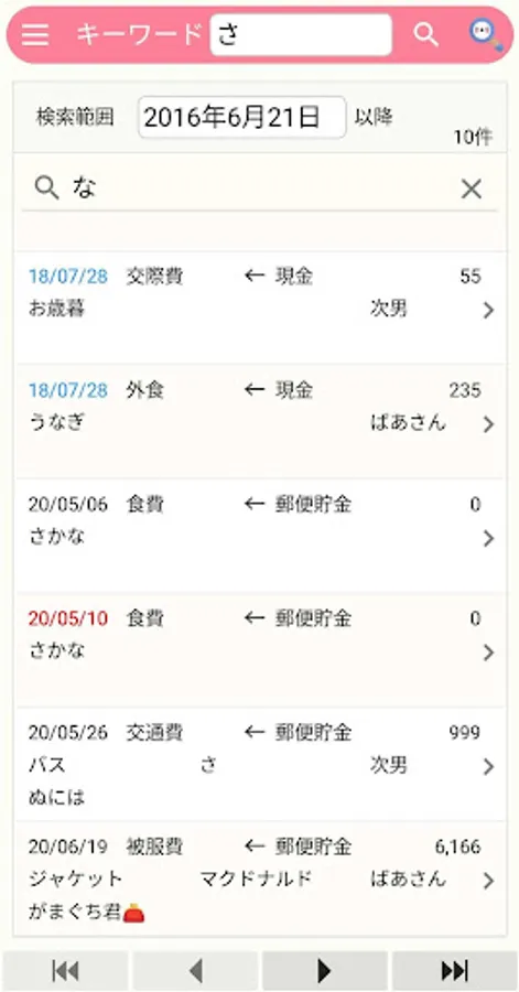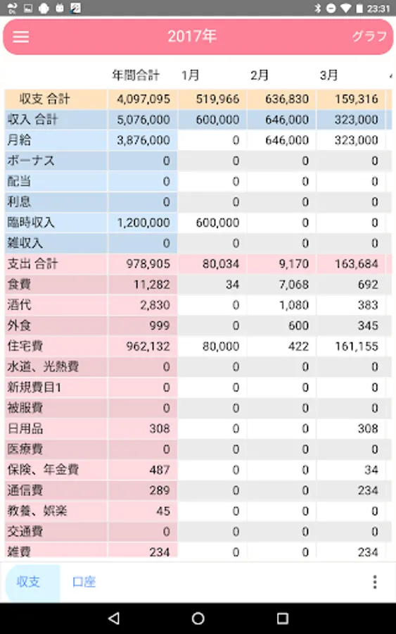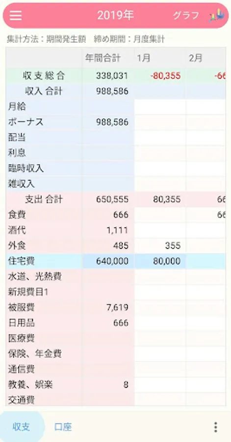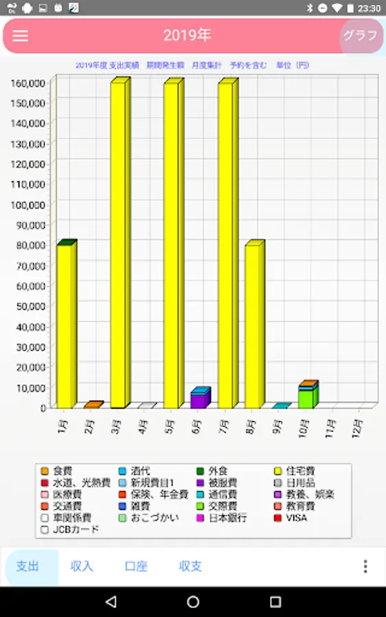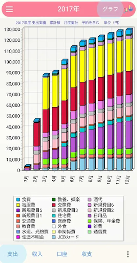 費目は予め設定されていますがPC版との連携で自由に変更できます。