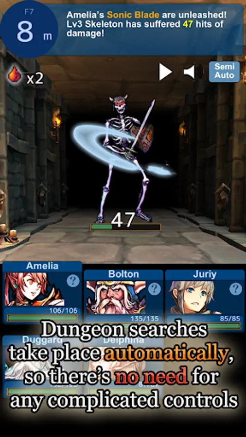 • Moving within dungeons and fighting is automatic, and requires no complicated controls