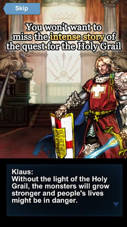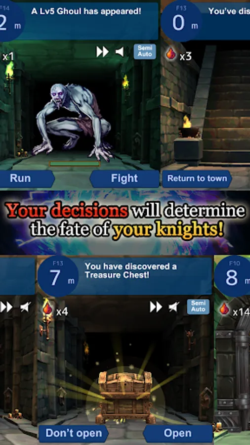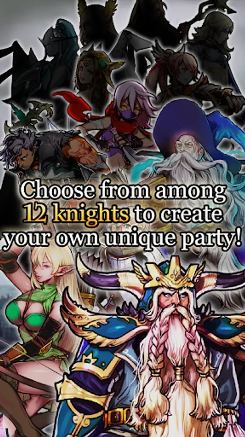 • Build a combination choosing from 12 knights each with their own individual personalities and Items to create your own unique party