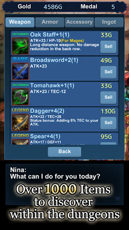 • Over 1000 Items to discover inside the dungeons! You can power up according to the number of Items you gather