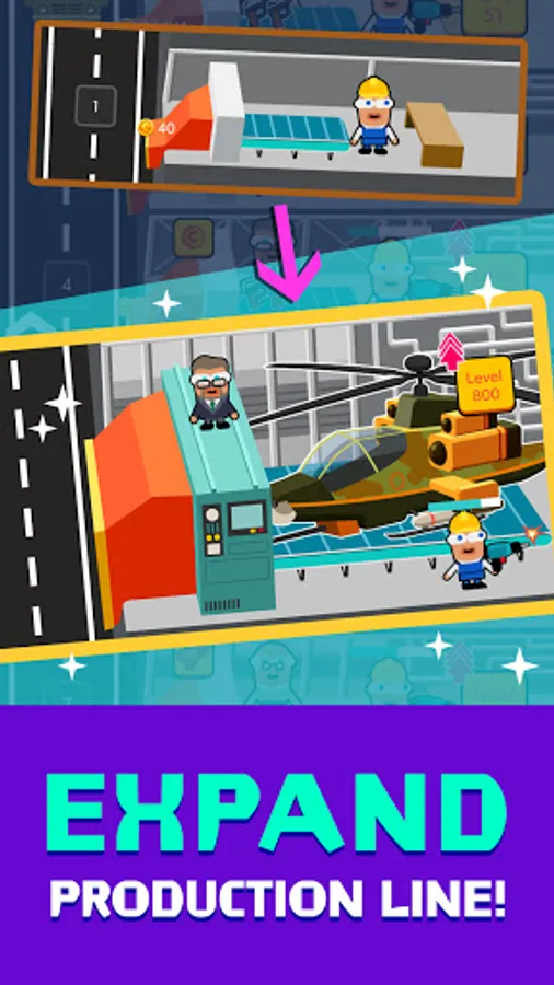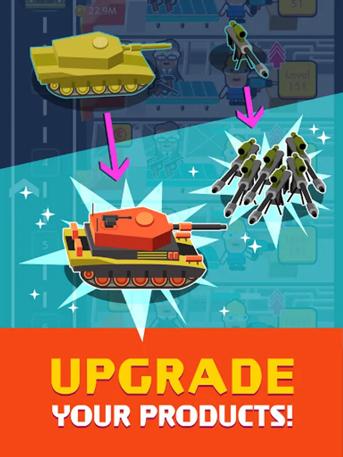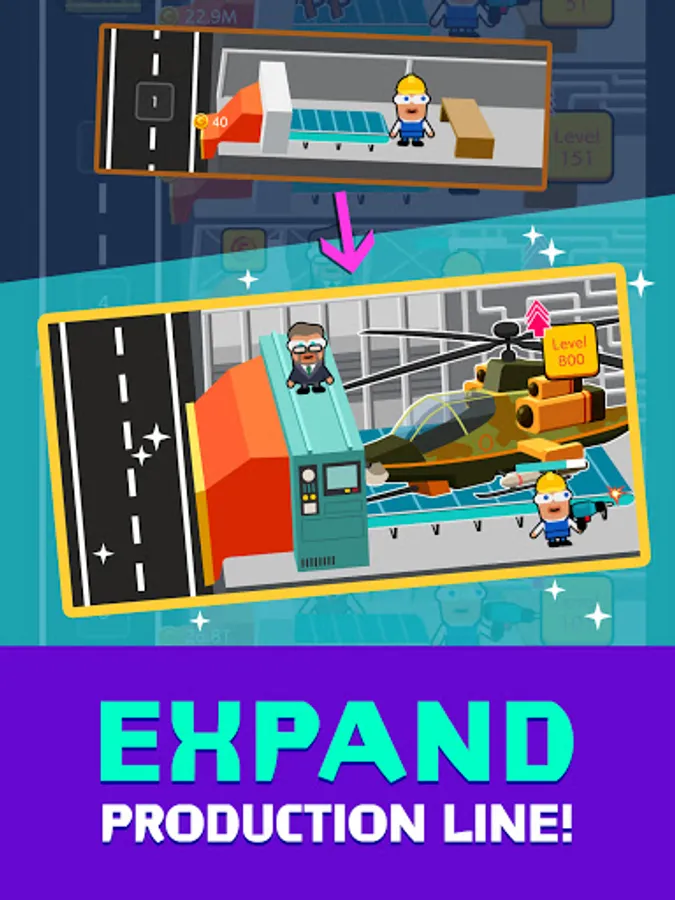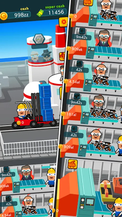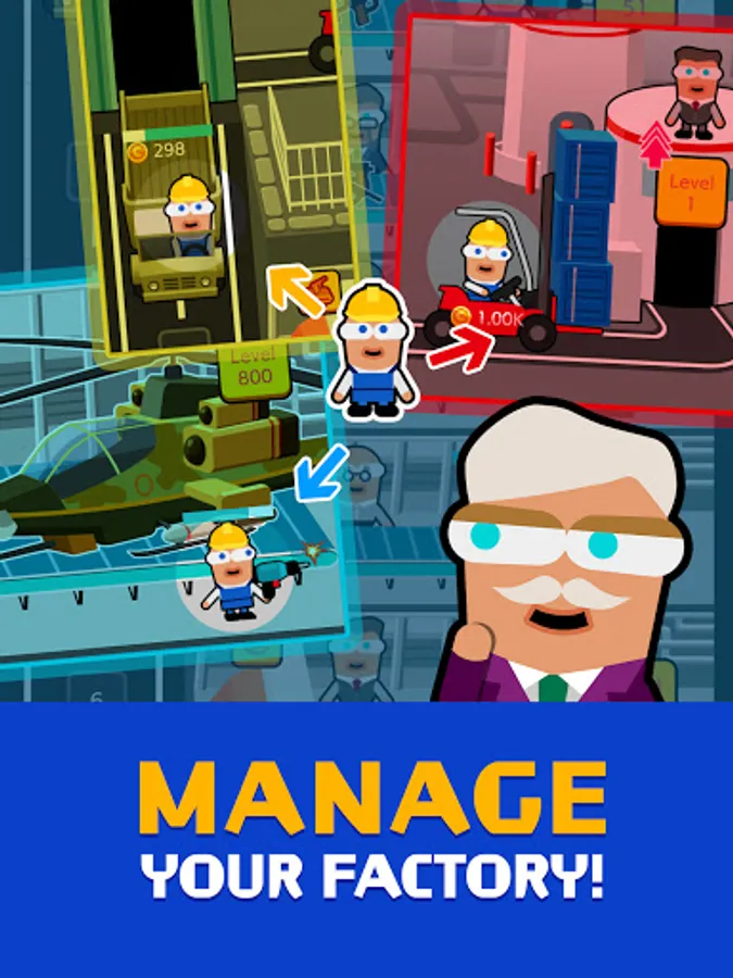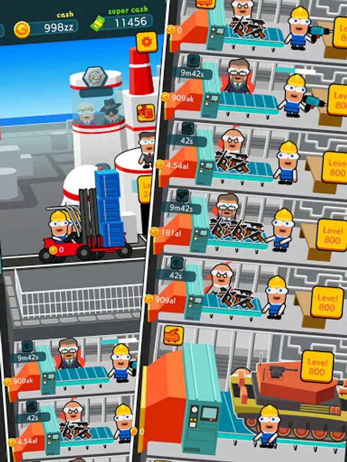 Level up factories in spare time to boost your idle income.