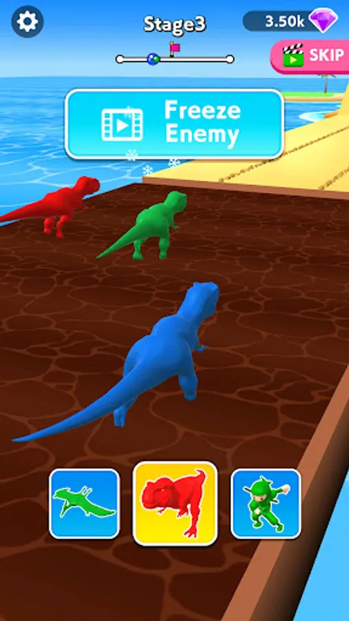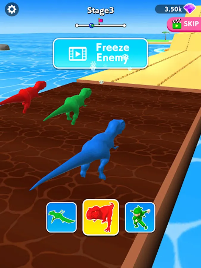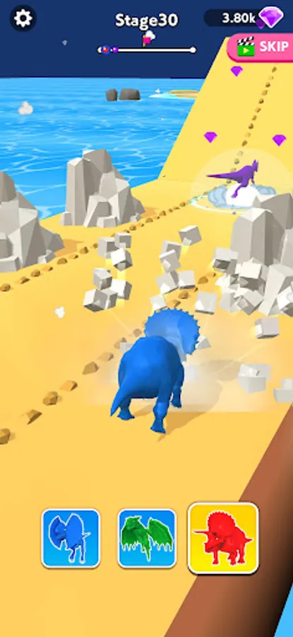 Traverse all elements: land, air and sea.To conquer them, you need to evolve quickly.Transform your dinosaur to suit the environment and defeat your opponents in your own game to become the winner!