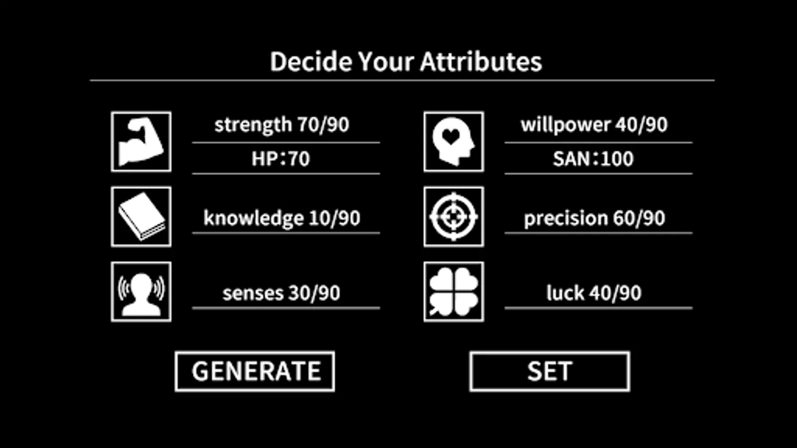 Your stats are randomized and customized at the start of a game, making each playthrough unique!