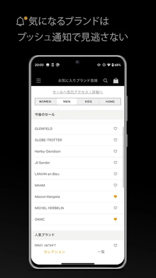 If you register your favorite brand from about 4,000 brands, you will receive a push notification when the sale is held. In addition, we will inform you of the daily sale start time and the latest sale information in a timely manner.