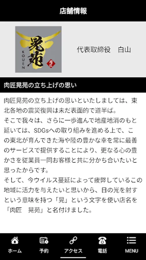 This is Koen, a yakiniku restaurant that handles Sendai beef A-5, located on the 1st floor of the Otokoyama Building, 22-2 Muikamachi, Hachinohe City, Aomori Prefecture. You can get a discount coupon when you collect visit points. Reservation is easy. All rooms are private rooms and can be enjoyed comfortably.