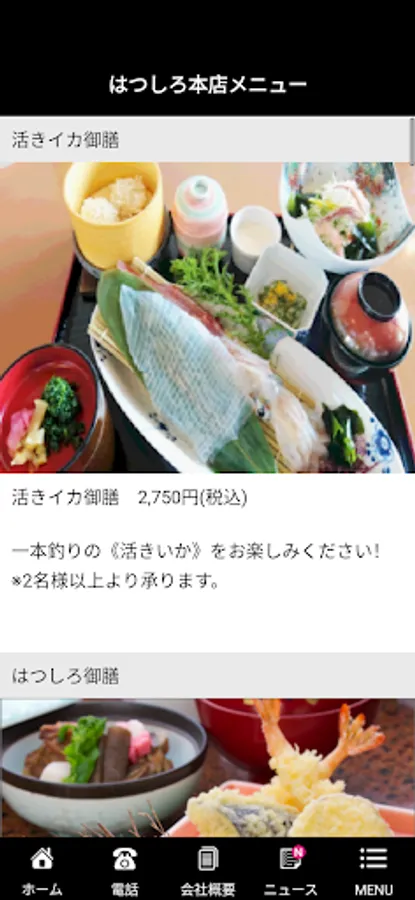 Fresh "Hatsushiro cuisine" such as Japanese food, blowfish kaiseki, conger, yellowtail, etc.