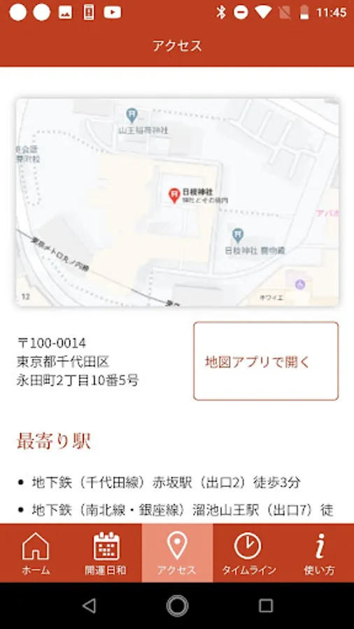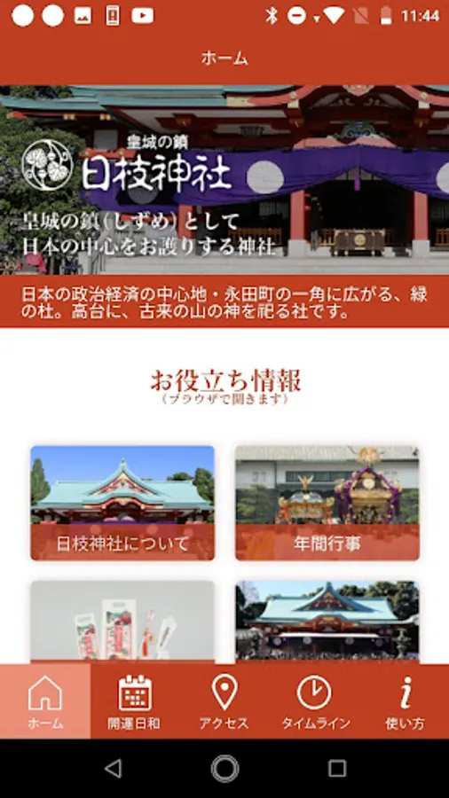 This application was created to let you know more about the topics about Hie Shrine in Nagata-cho, Tokyo and the events held at this shrine, so that you can enjoy yourself.