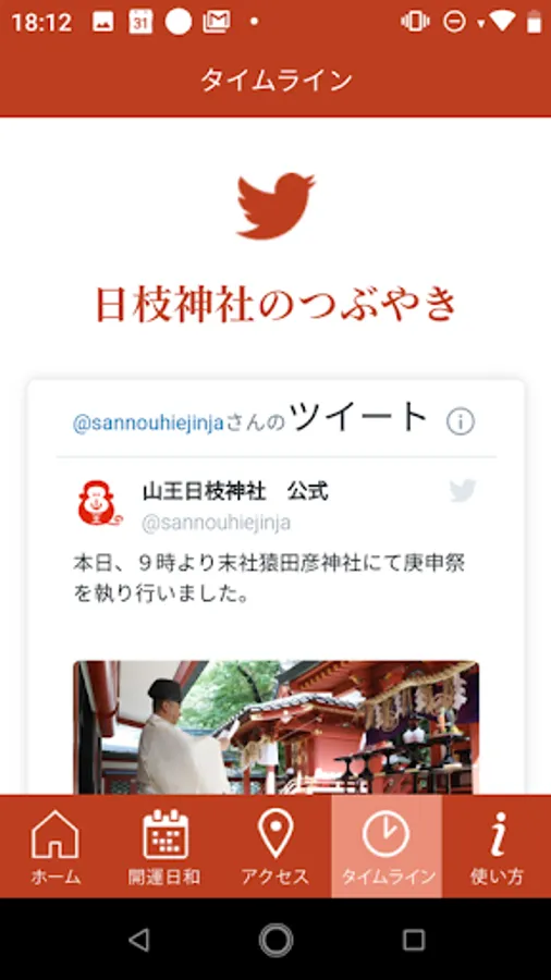 Information on the Hie Shrine Twitter official account is provided in real time.