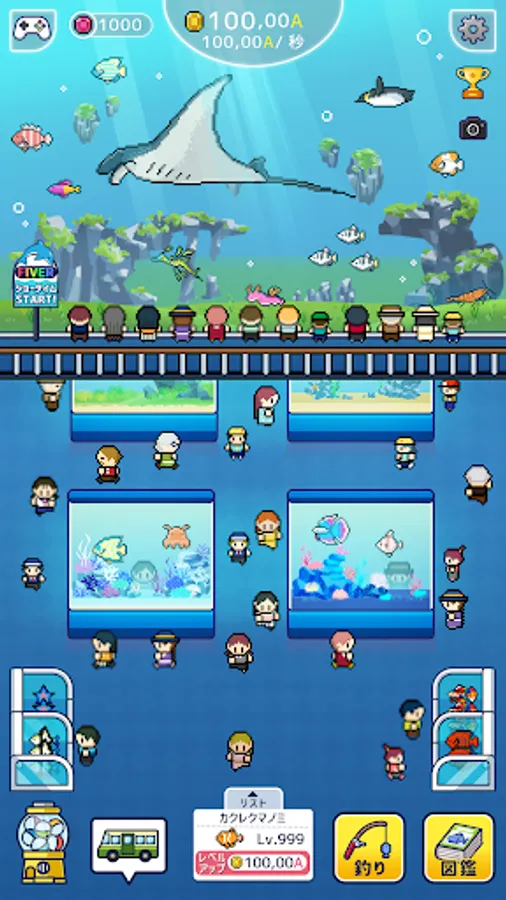 特訓して生き物の魅力を上げると売り上げもアップするよ。