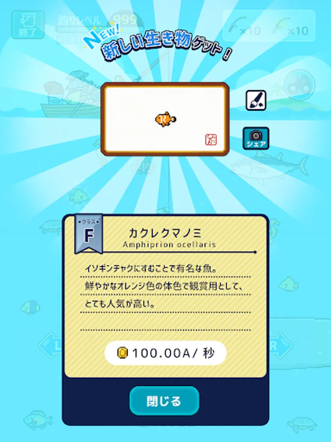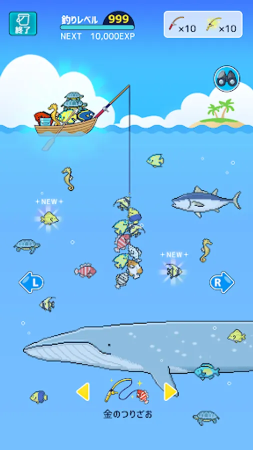 苦手な方でも金のつりざお(無料)を使えば、簡単に生き物を釣ることができます。