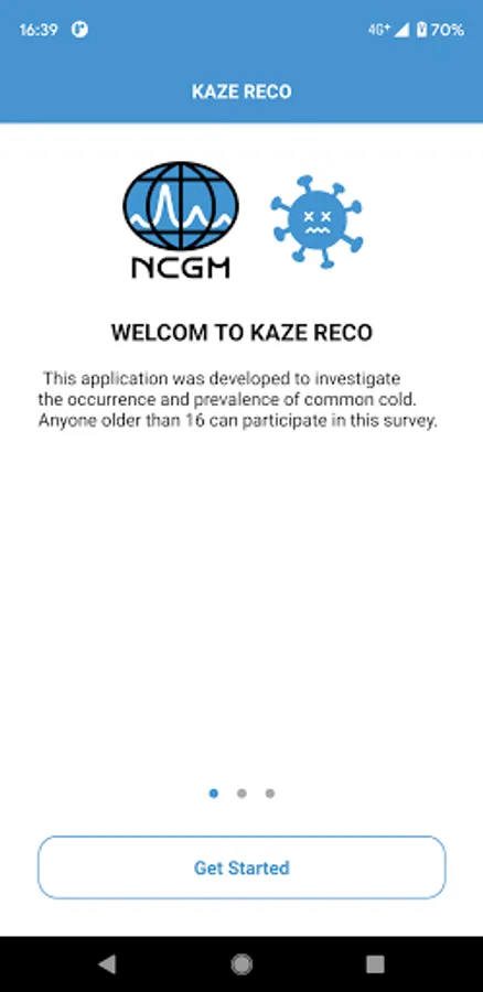 KAZE RECO is an application to investigate common cold symptoms. Common cold symptoms include a variety of symptoms including fever, cough, nasal symptoms, sore throat, and fatigue. This application will ask you about these symptoms, as well as utilize the health data recorded on Google Fit, including activity, and sleep.