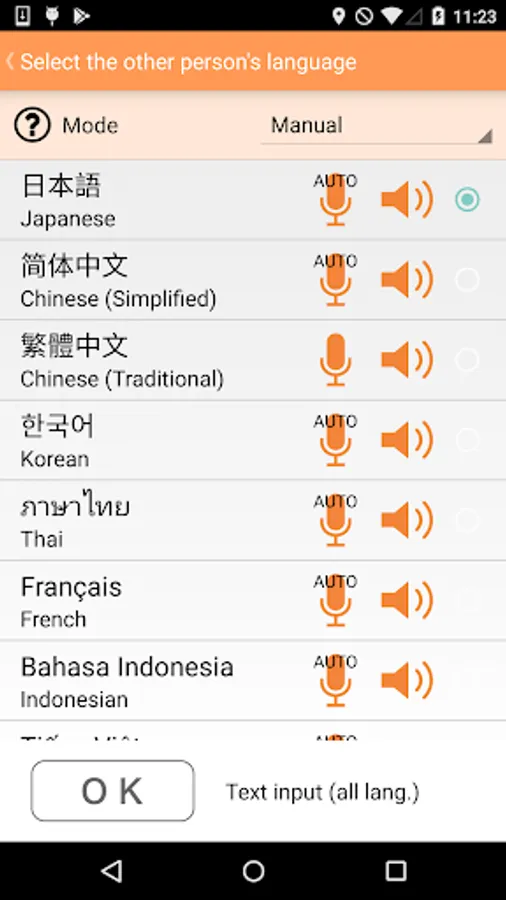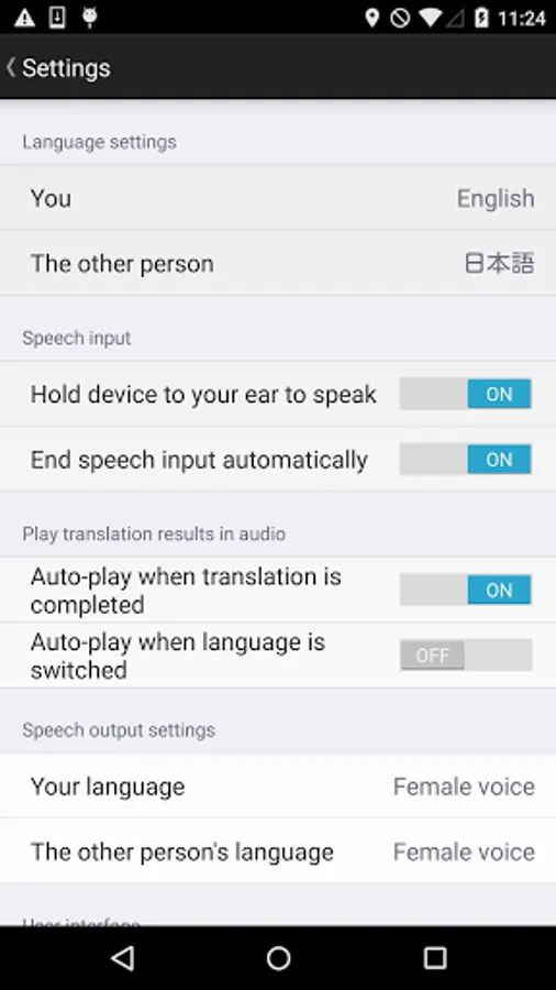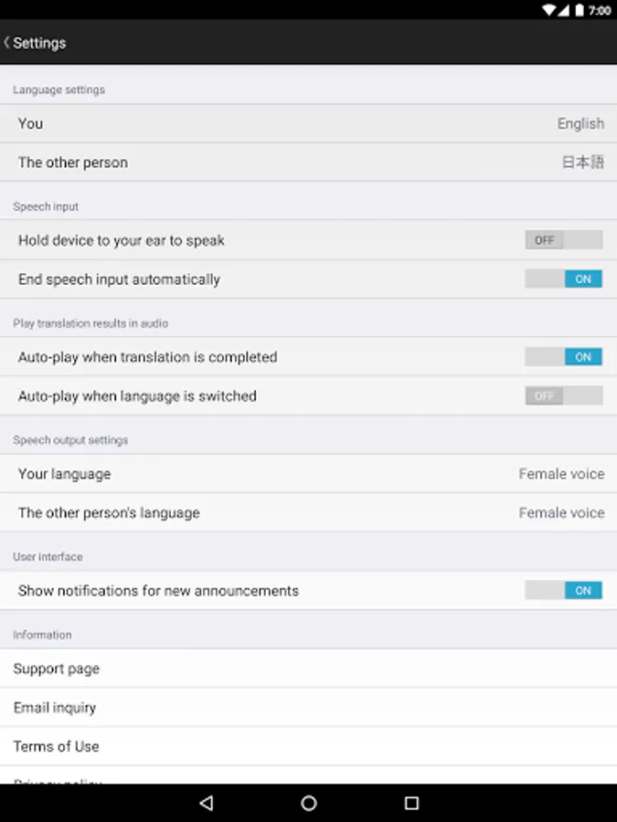The translation direction can be instantly switched, allowing 2 people that speak different languages to communicate using a single device.