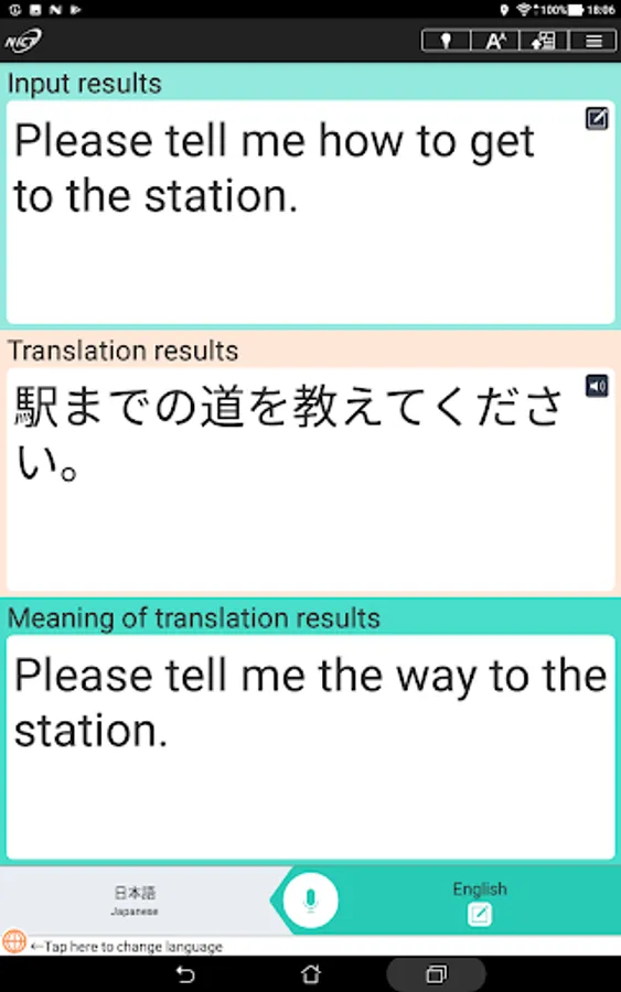 While VoiceTra can be used as a dictionary to look up words, it is recommended to input sentences as it interprets the meaning from the context to output the translation results.