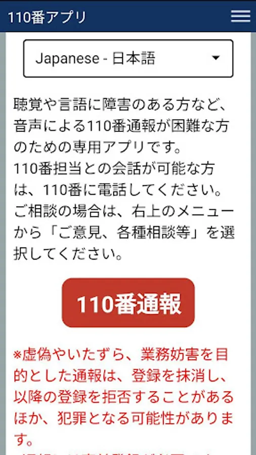 ○ For inquiries about operation, please visit https://www.npa.go.jp/bureau/safetylife/110/app/index.html