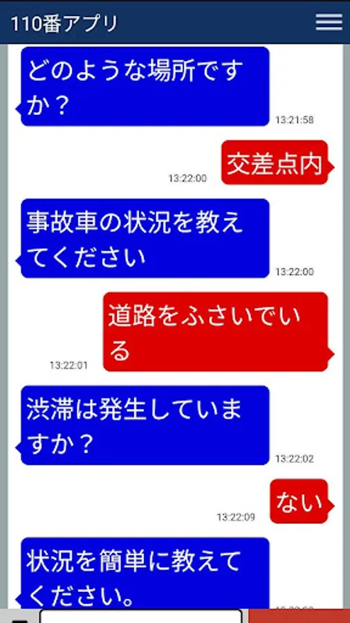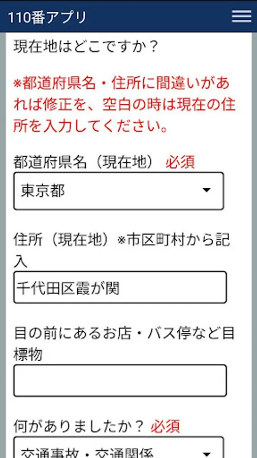 ○ This app will report to the police headquarters, which is the jurisdiction of the place, such as those who have a hearing impairment, such as those who have a disorder, and to the police headquarters, such as when they encounter an incident or accident. can do.
