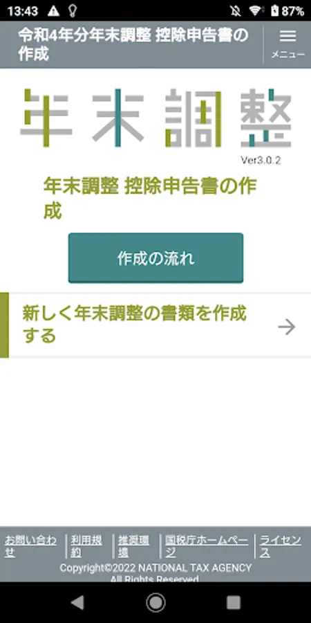 This application is software provided by the National Tax Agency that has a function that allows employees to easily create documents related to year-end tax adjustments to be submitted to their workplaces in electronic data or on paper, using data such as deduction certificates.