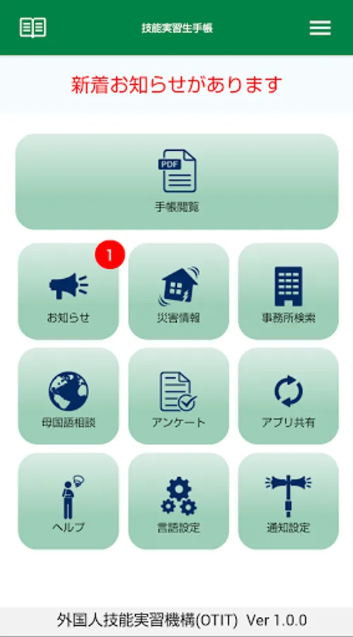 You can also get information from the Organization for Technical Intern Training for Foreigners and disaster information in Japan.