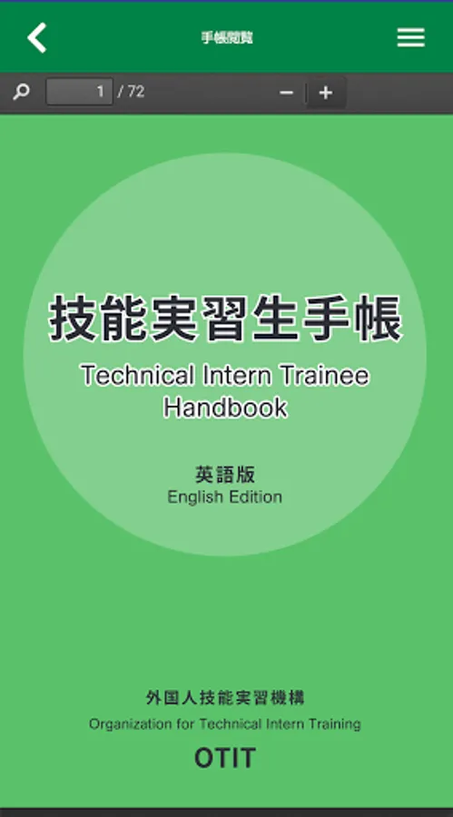 The "Technical Intern Trainee's Handbook" describes the laws that are particularly important to you and what you need to know in order to live in Japan.