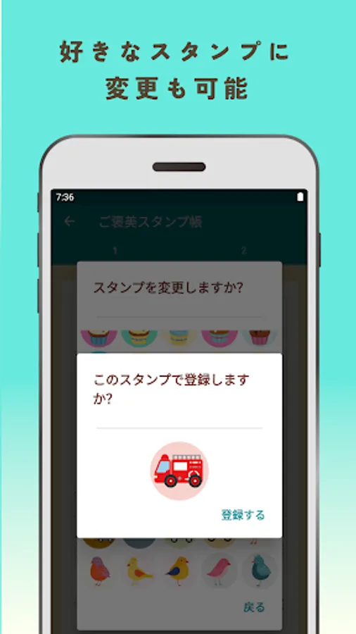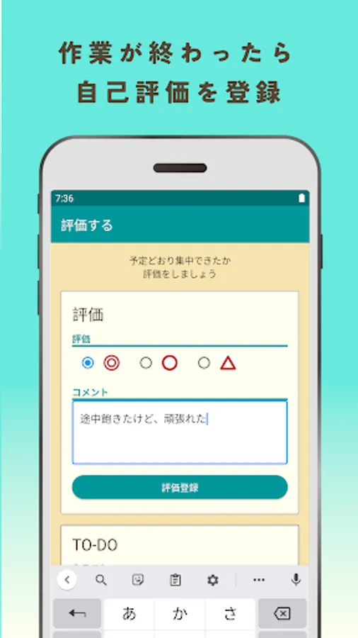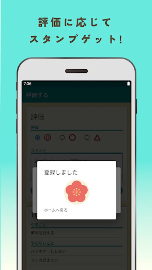For example, when you want to concentrate on your studies or work, do what you should do so you don't look at smartphone games or social media. After the timer ends, you can rate your performance and earn stamps based on your rating.