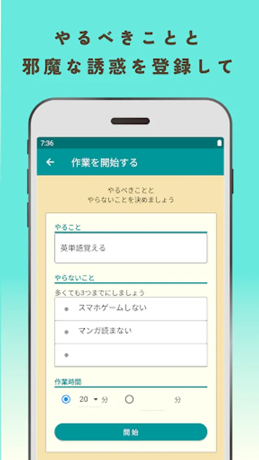 If the control function is not working well, you will give in to temptation and waste your time, making it difficult to achieve your goals.This app will help you increase your ability to resist temptation.