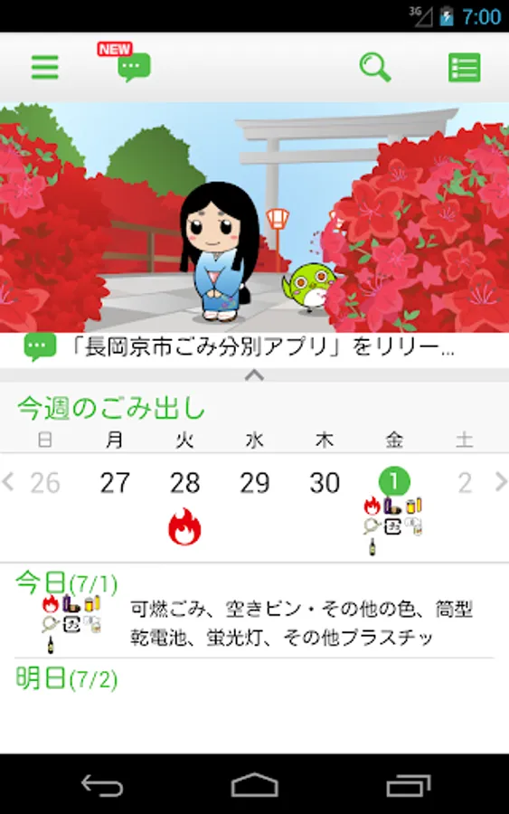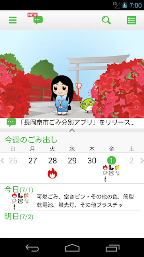 長岡京市公式アプリ!ごみ収集日カレンダーやごみの出し方、ごみ分別辞典など、ごみに関する様々な情報を簡単に確認できるアプリです。