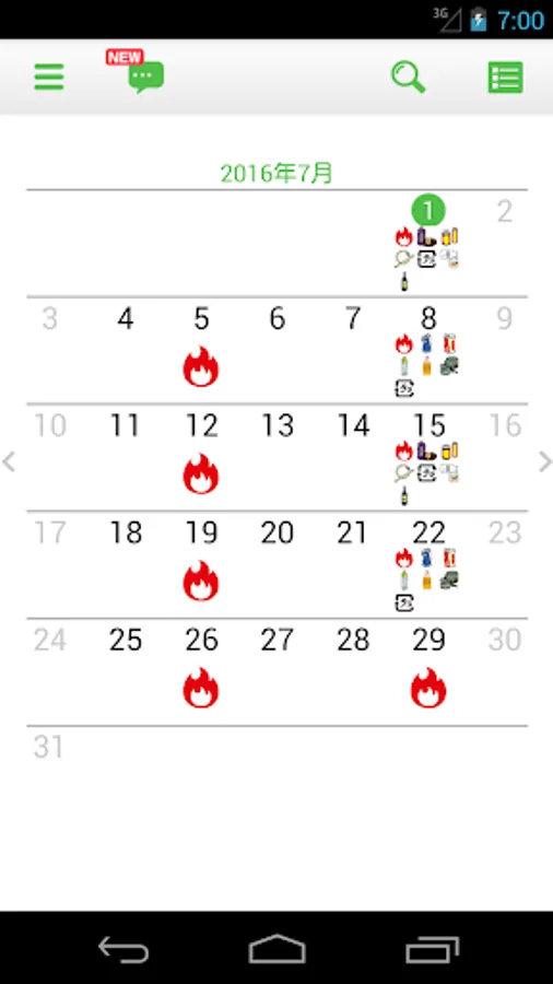 今日と明日、週、月の3パターンによるごみ収集日程を一つの画面ですぐに確認することができます。